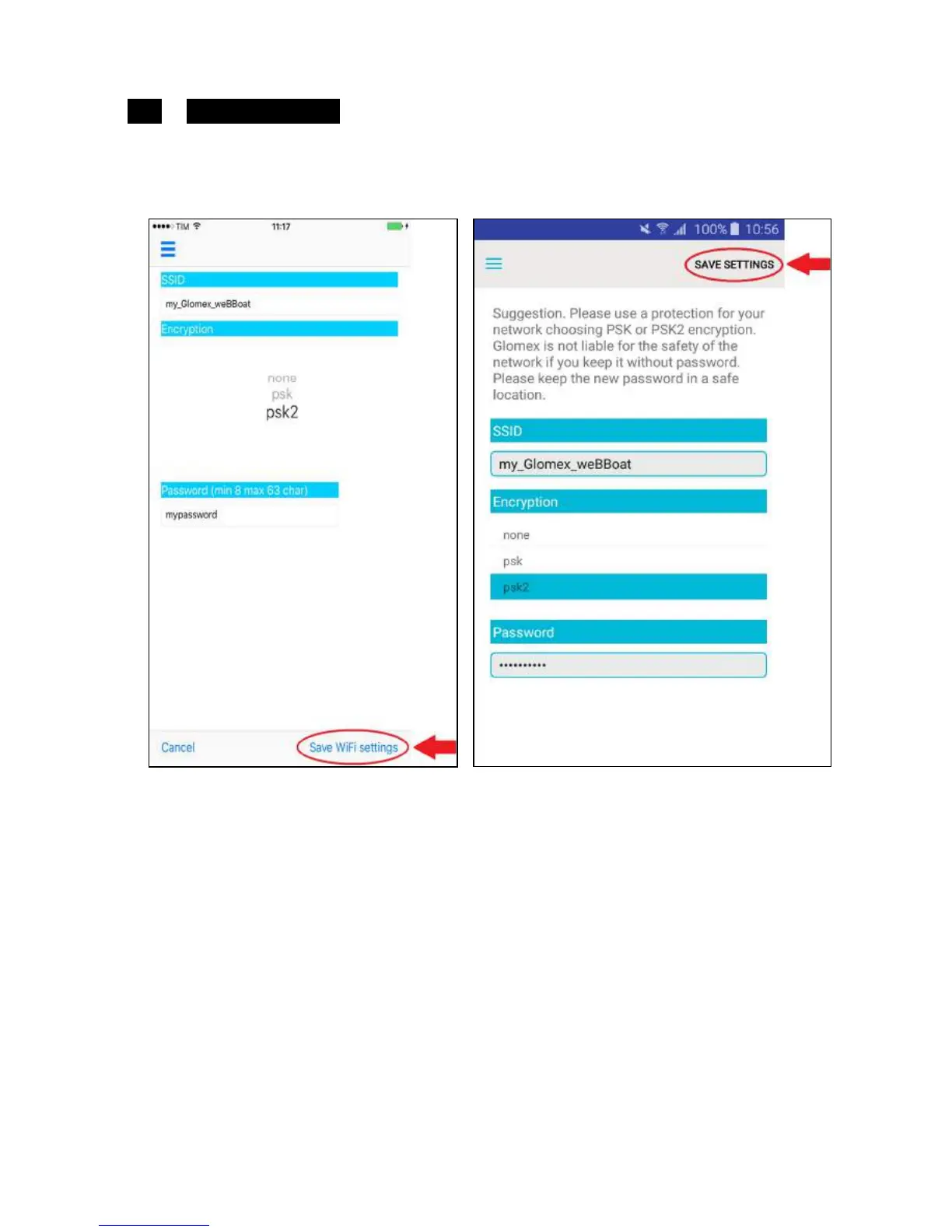 Now press Save Wi-Fi settings in the iOS version or SAVE SETTING in the