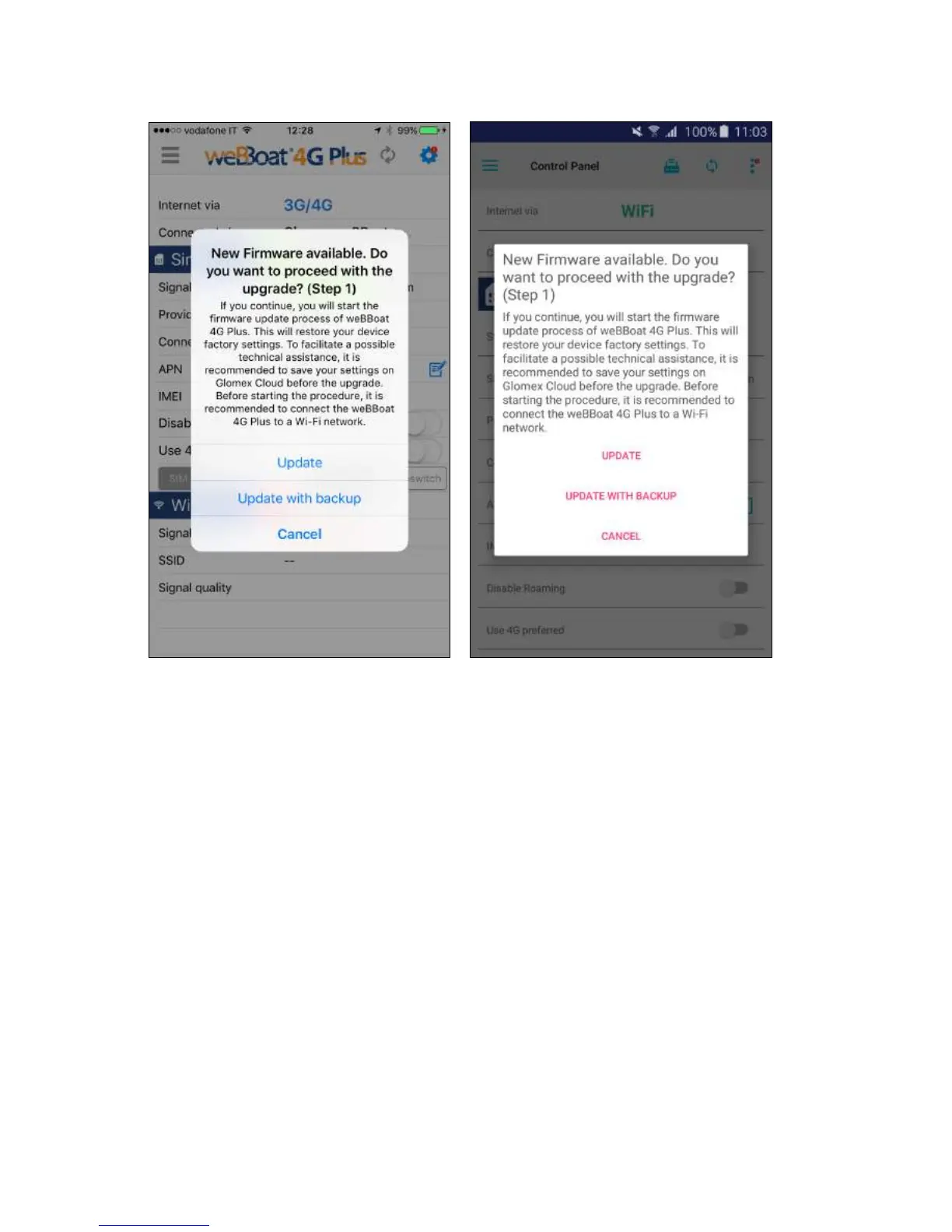 NOTE: If you update the firmware, the weBBoat 4G Plus will default to the