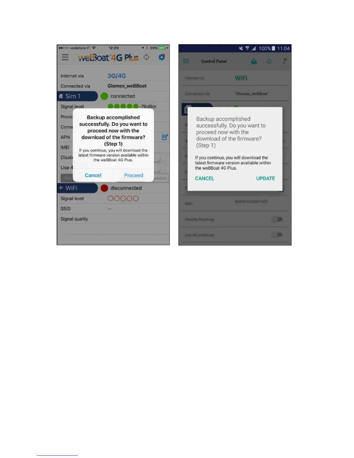 latest Firmware release available to weBBoat 4G Plus (Fig. 41).