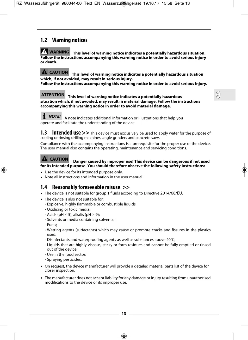 >> This device must exclusively be used to apply water for the purpose of