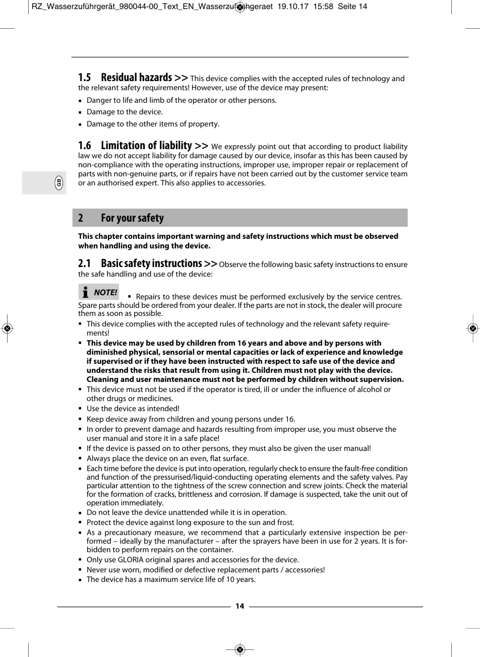 and function of the pressurised/liquid-conducting operating elements and the safety valves. Pay