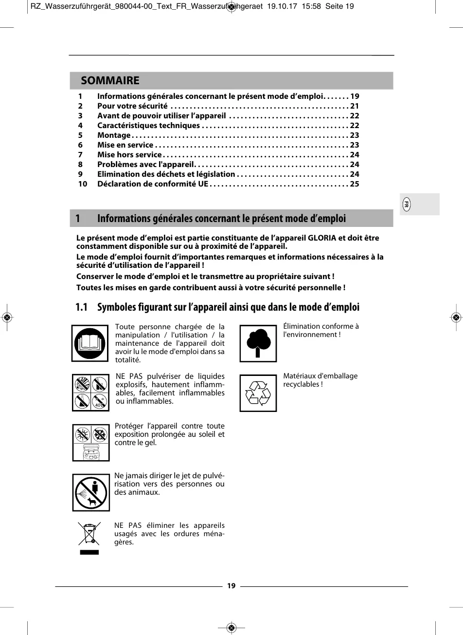Le présent mode d’emploi est partie constituante de l’appareil GLORIA et doit être