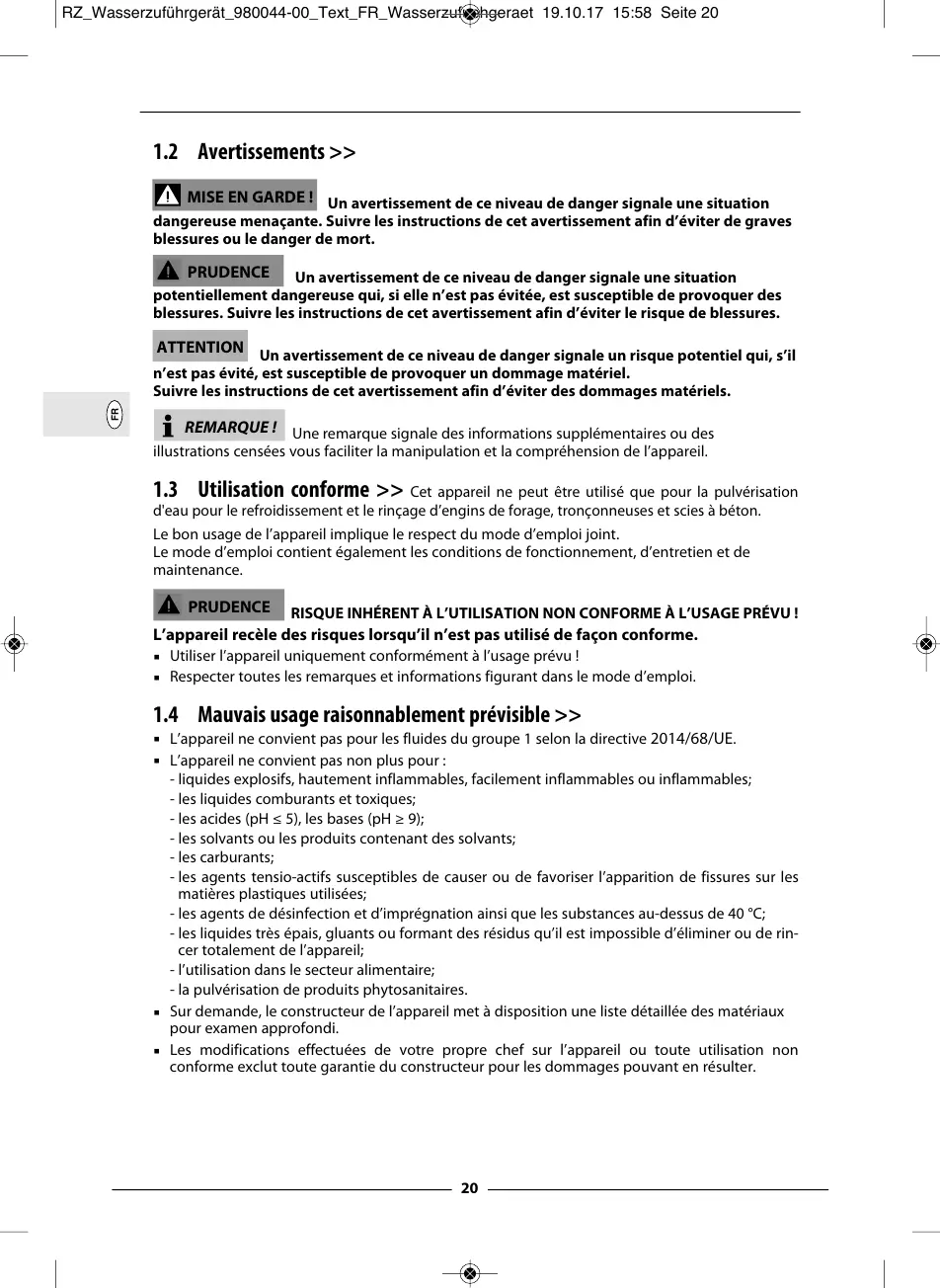 RISQUE INHÉRENT À L’UTILISATION NON CONFORME À L’USAGE PRÉVU !
