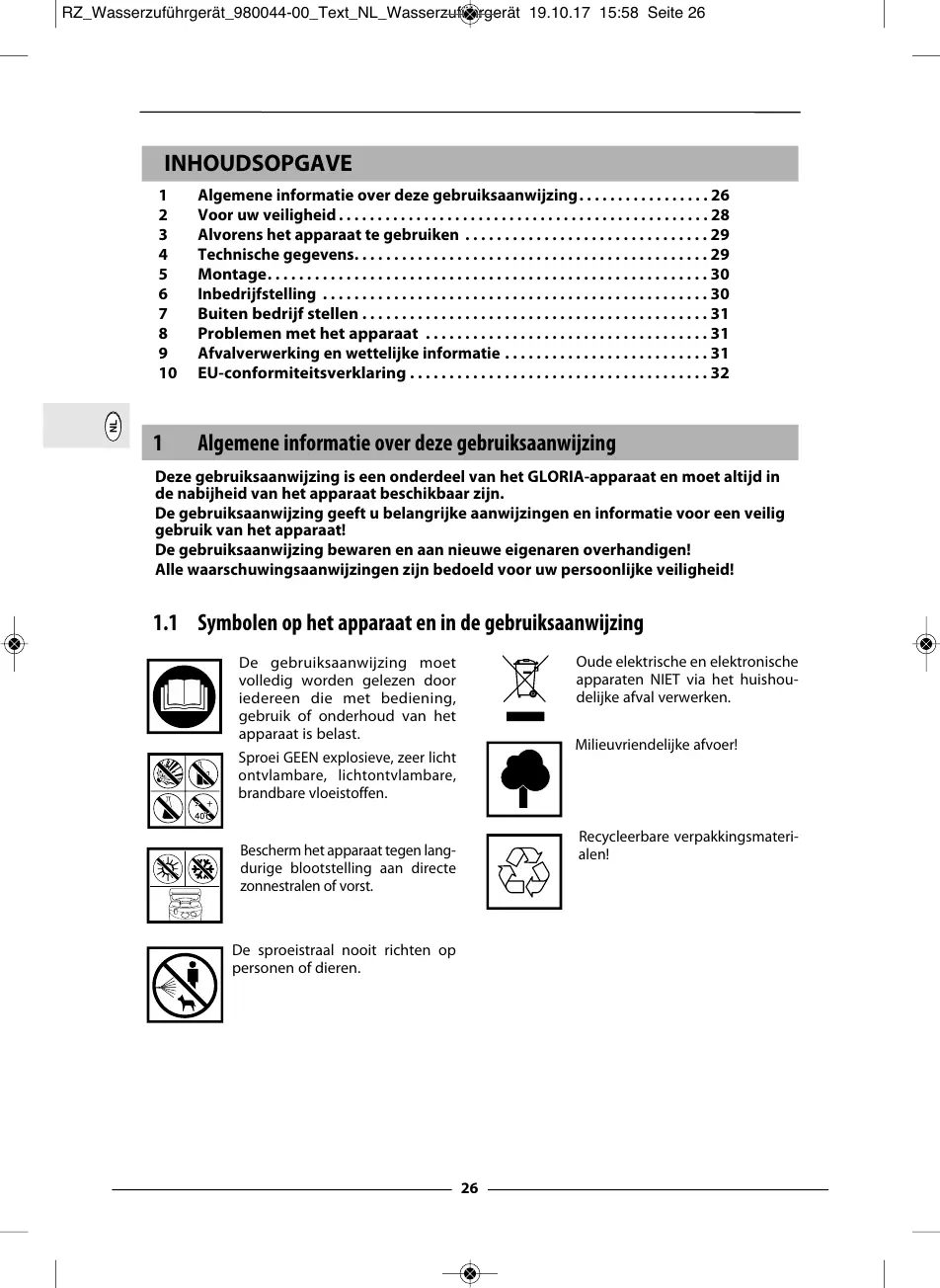 Deze gebruiksaanwijzing is een onderdeel van het GLORIA-apparaat en moet altijd in
