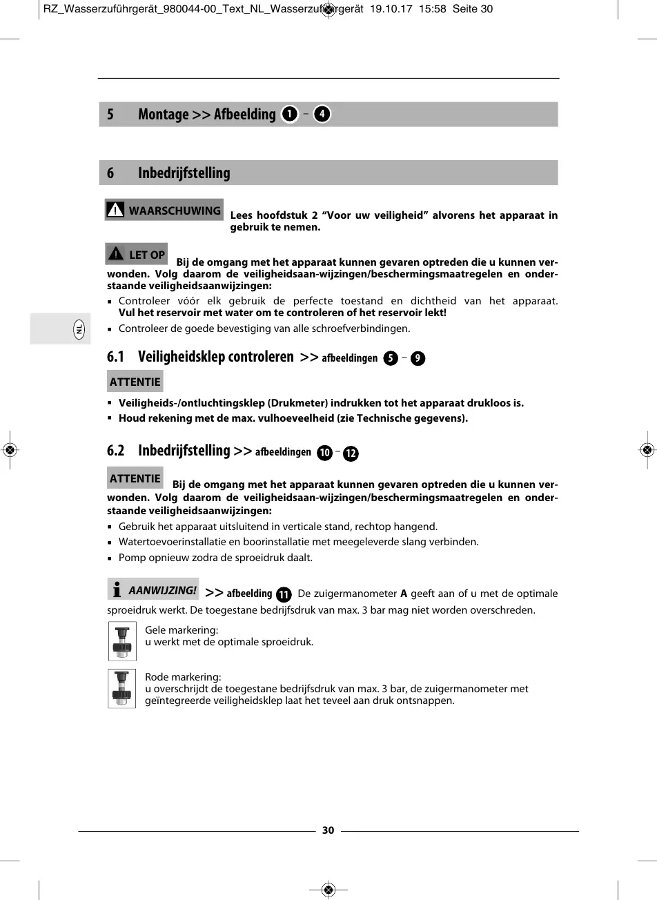 sproeidruk werkt. De toegestane bedrijfsdruk van max. 3 bar mag niet worden overschreden.