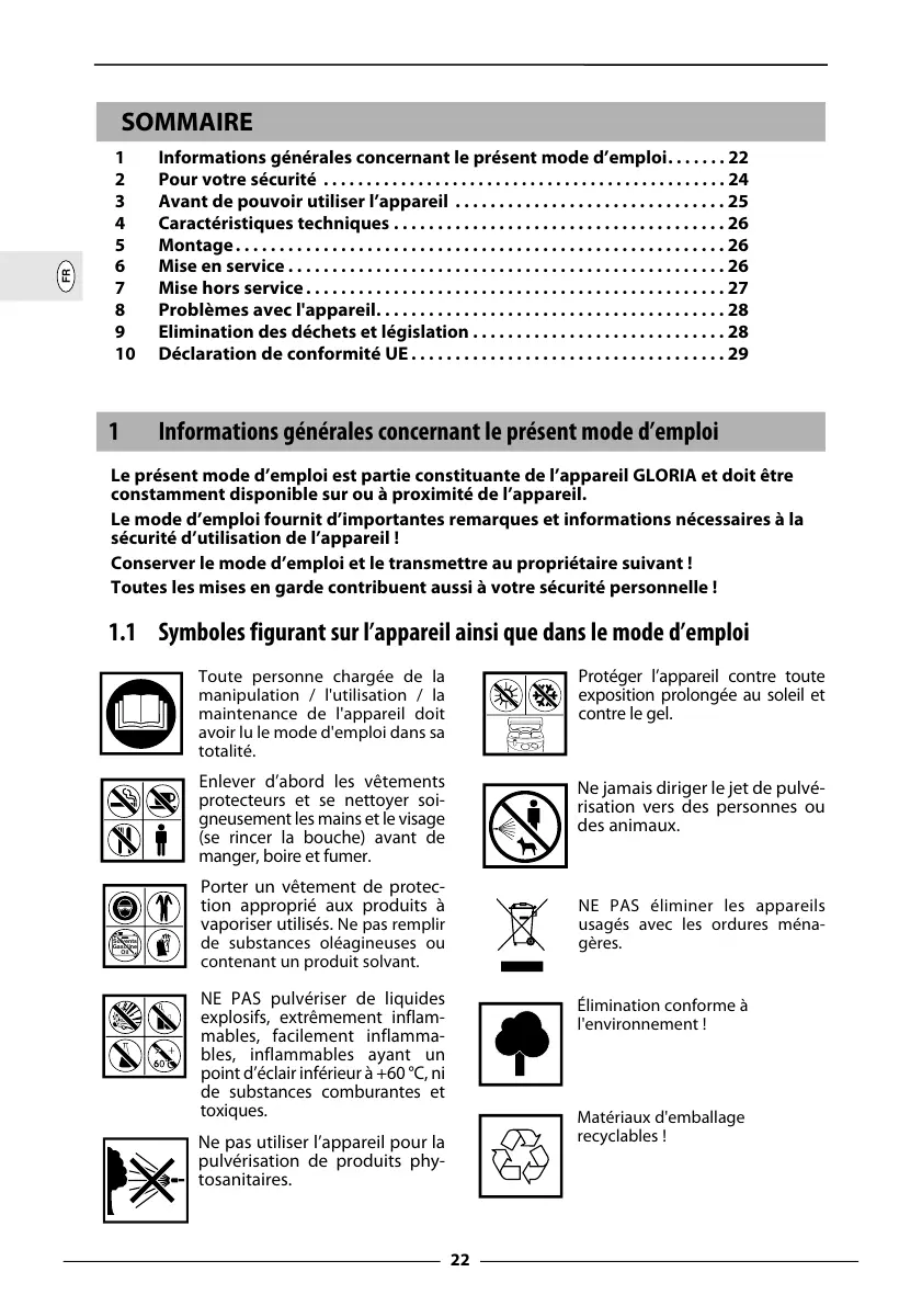 Le présent mode d’emploi est partie constituante de l’appareil GLORIA et doit être