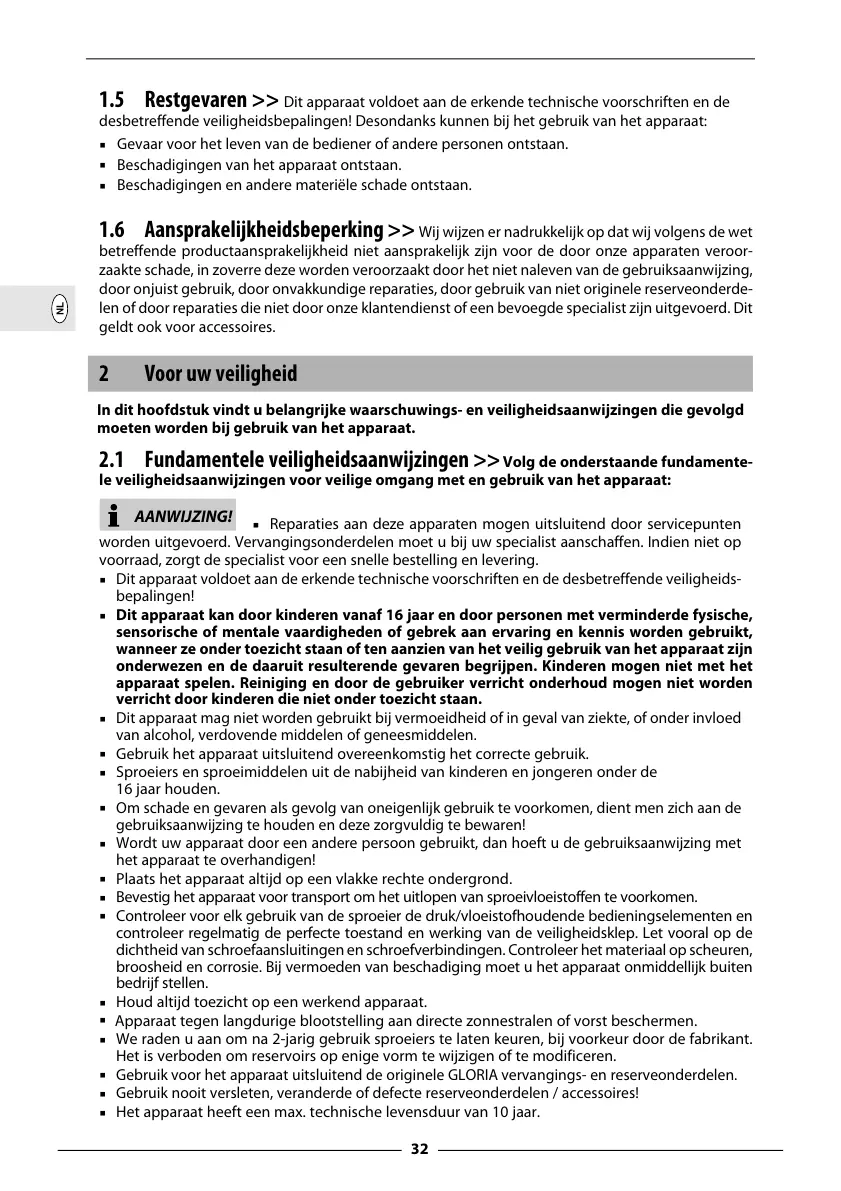 1.5 Restgevaren >> Dit apparaat voldoet aan de erkende technische voorschriften en de