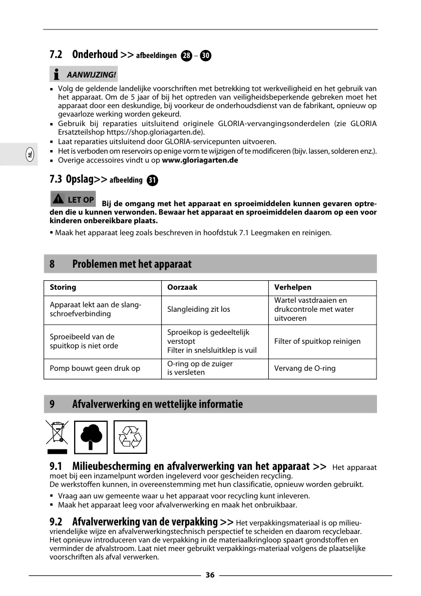 Gebruik bij reparaties uitsluitend originele GLORIA-vervangingsonderdelen (zie GLORIA