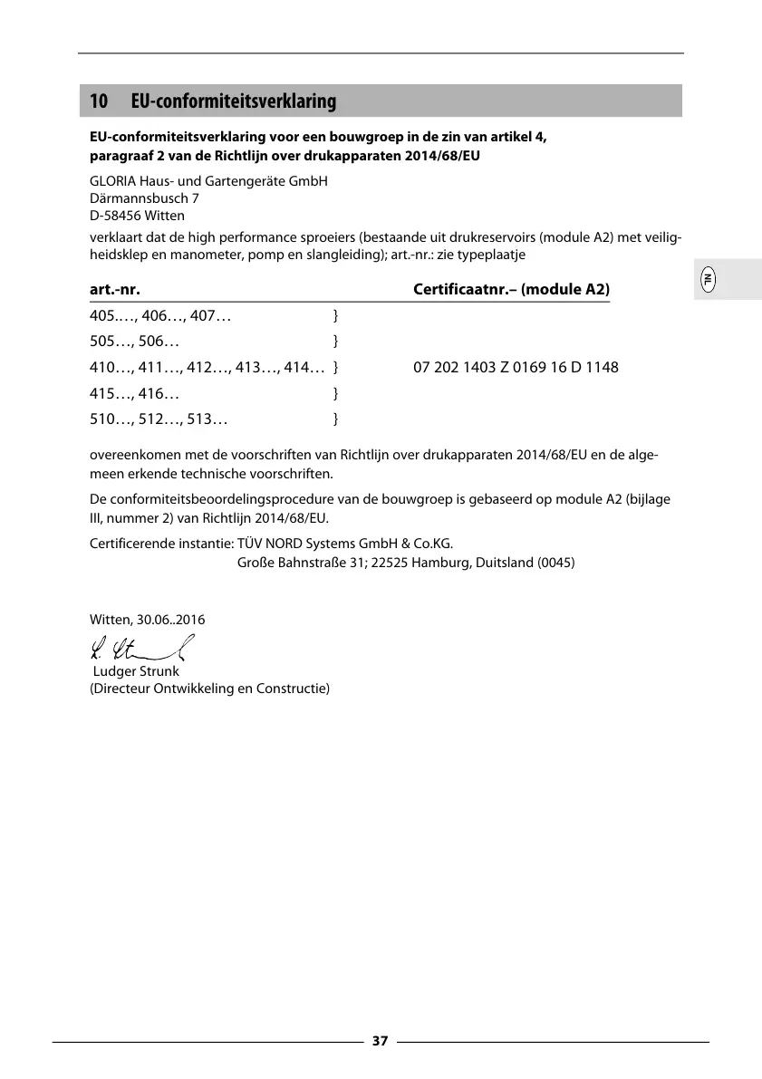 Certificerende instantie: TÜV NORD Systems GmbH & Co.KG.