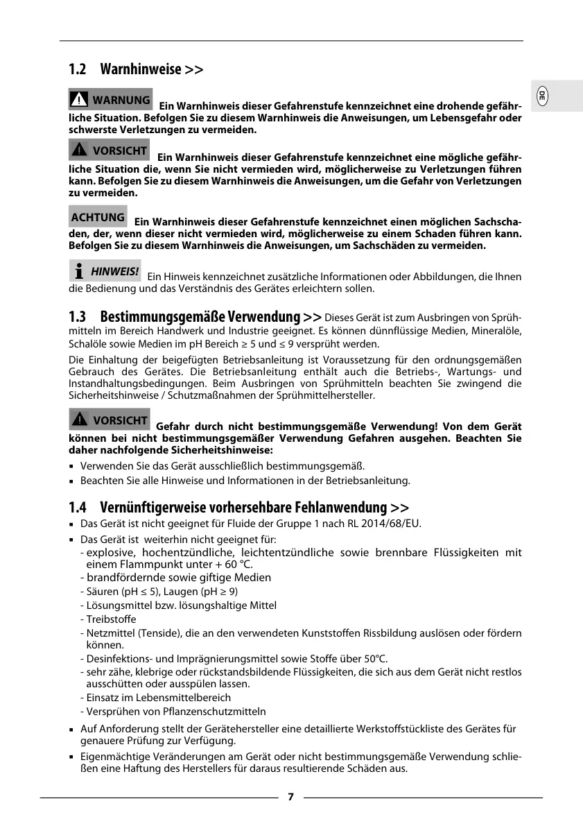 1.4 Vernünftigerweise vorhersehbare Fehlanwendung >>