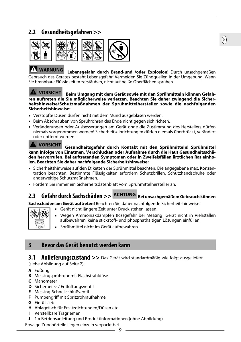 Beim Umgang mit dem Gerät sowie mit den Sprühmitteln können Gefah-