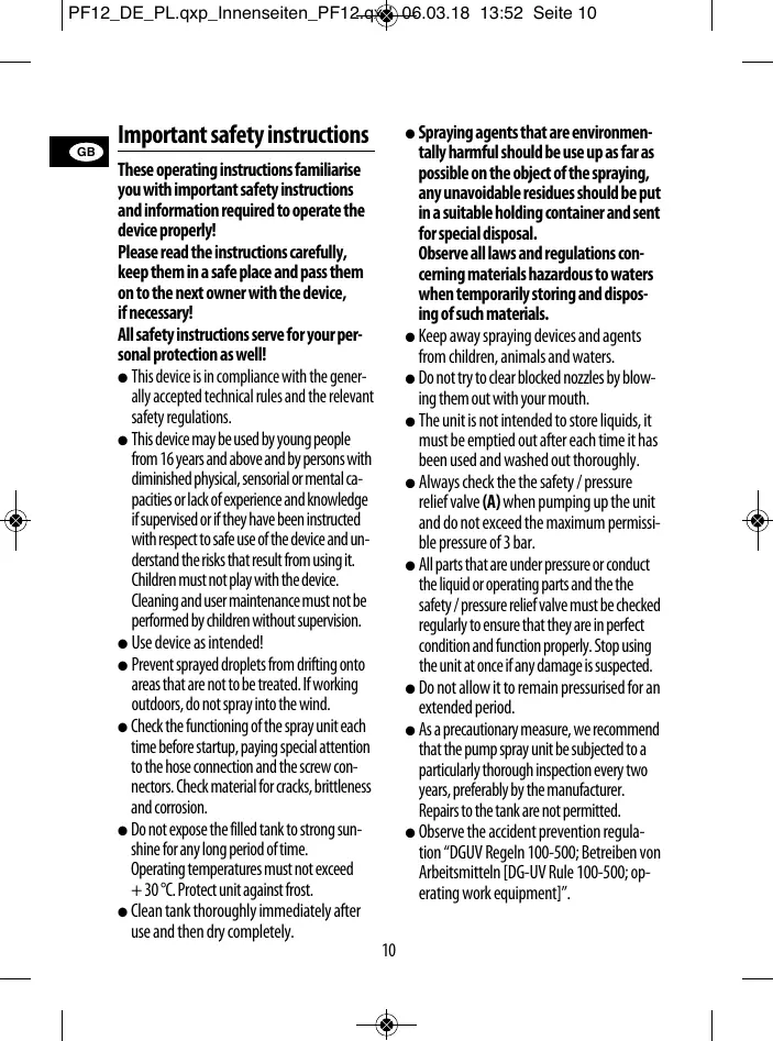All safety instructions serve for your per-