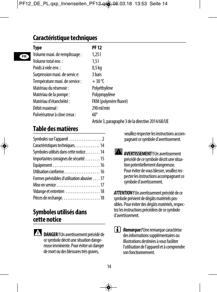 Symboles utilisés dans cette notice. . . . . . . . 14