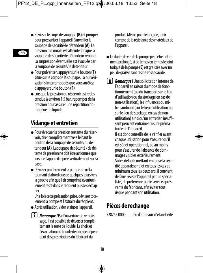 pour pressuriser l'appareil. Surveiller la