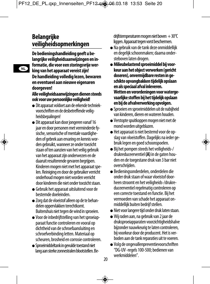 slag van vloeistoffen. Dagelijks na ieder ge-