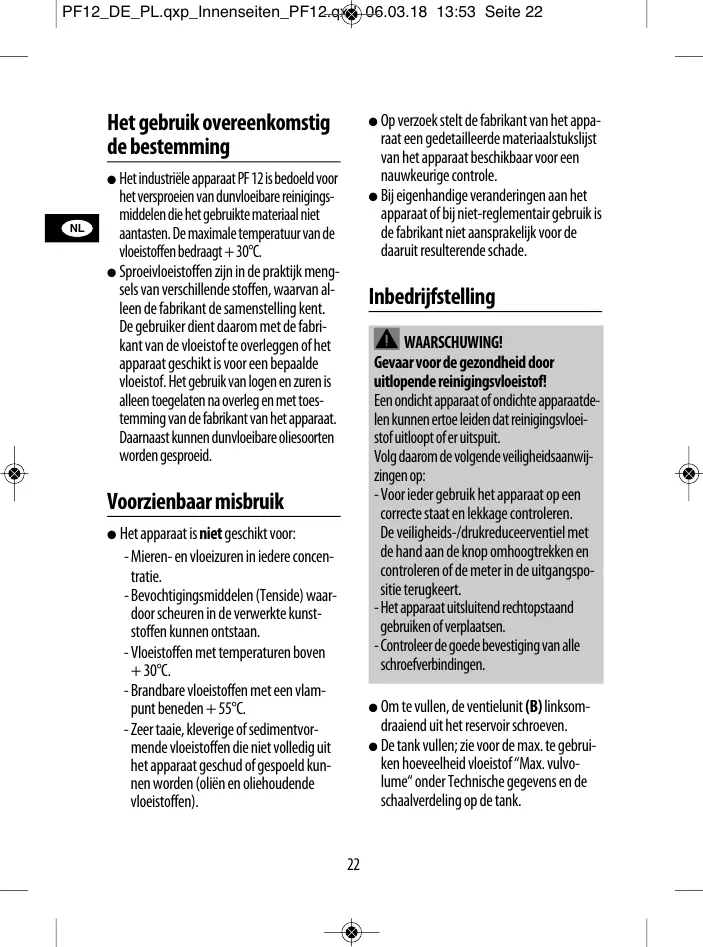 Het industriële apparaatPF 12 is bedoeld voor