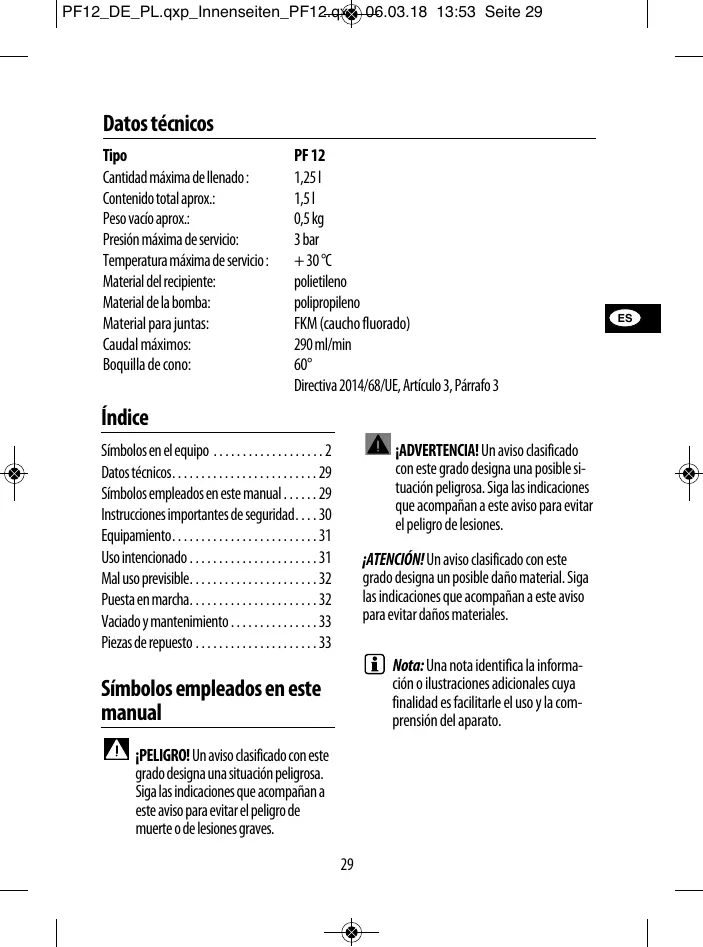 Datos técnicos. . . . . . . . . . . . . . . . . . . . . . . . . 29