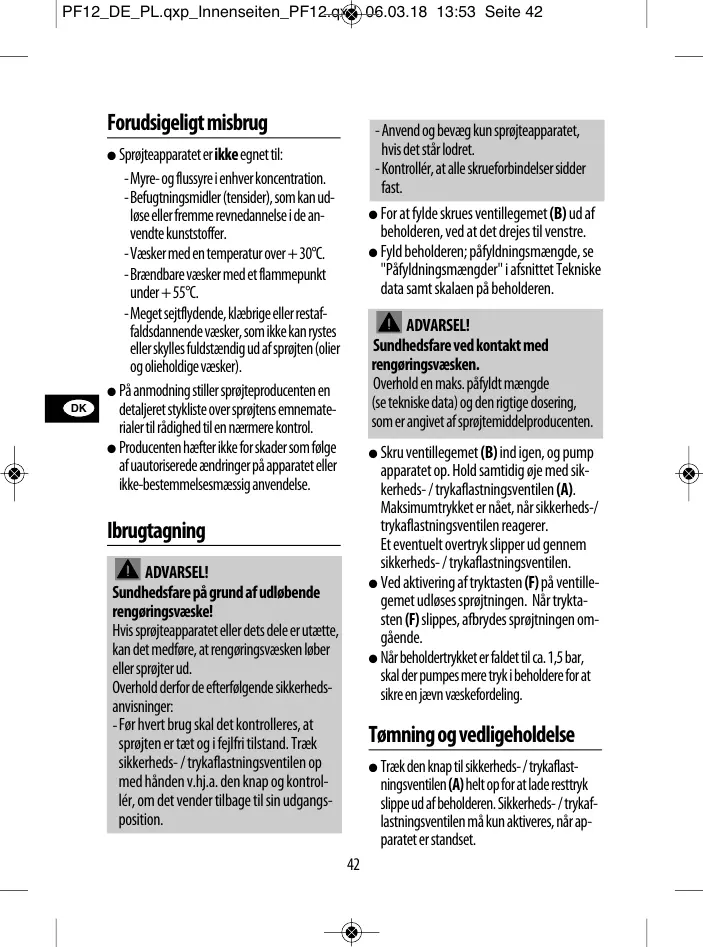 sprøjten er tæt og i fejlfri tilstand. Træk