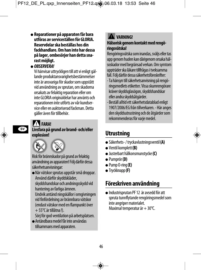 - Beställ alltid ett säkerhetsdatablad enligt