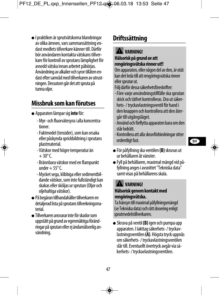 apparaten. l Iakttag säkerhets- / tryckav-