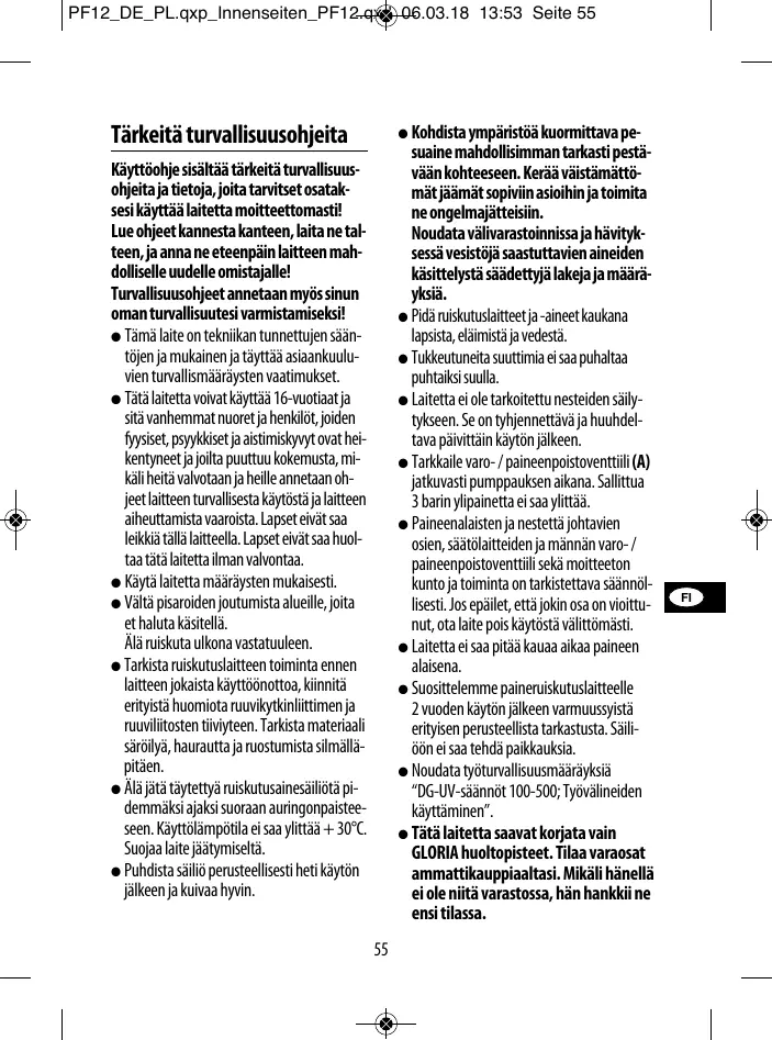 GLORIA huoltopisteet. Tilaa varaosat