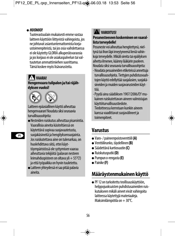 turvallisuusohjeita. Tiettyjen puhdistusvaah-