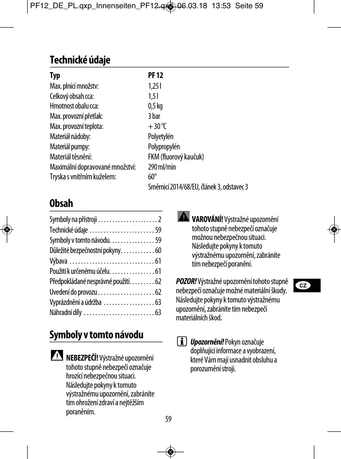 Symboly v tomto návodu. . . . . . . . . . . . . . . . 59