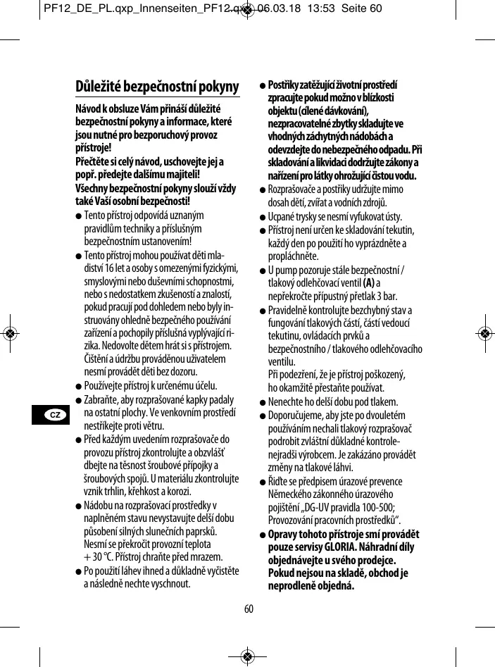 Přečtěte si celý návod, uschovejte jej a