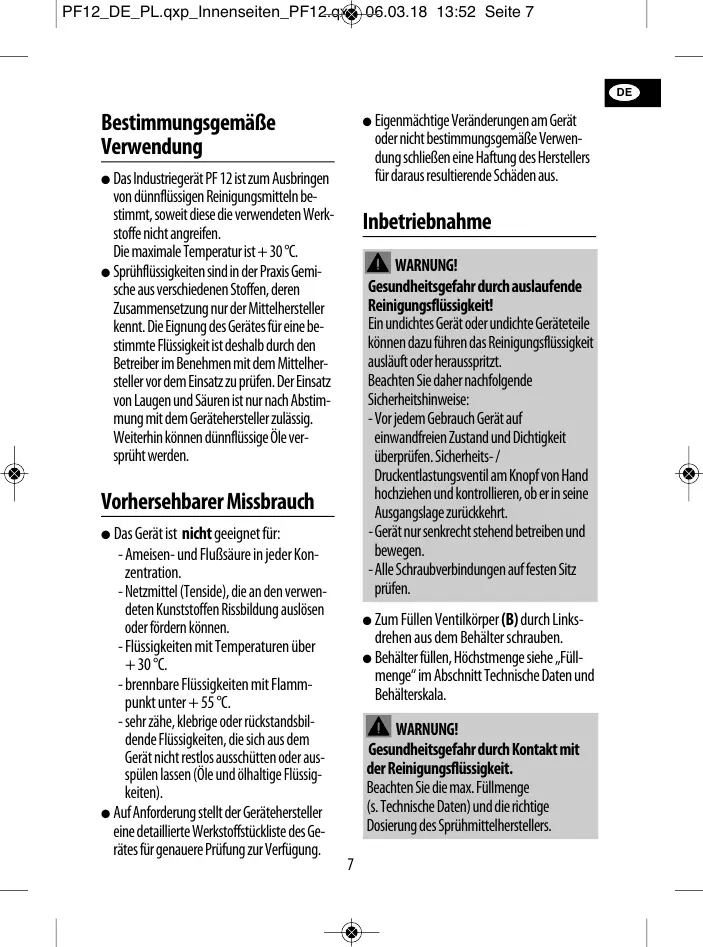 l Das Industriegerät PF 12 ist zum Ausbringen