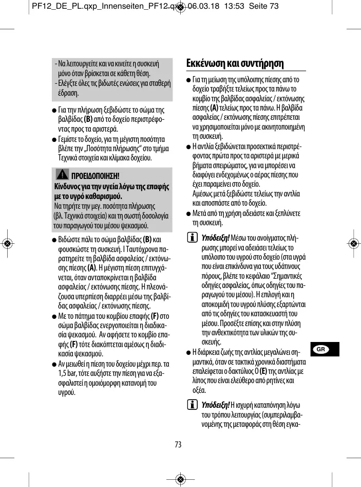 ρατηρείτε τη βαλβίδα ασφαλείας / εκτόνω-