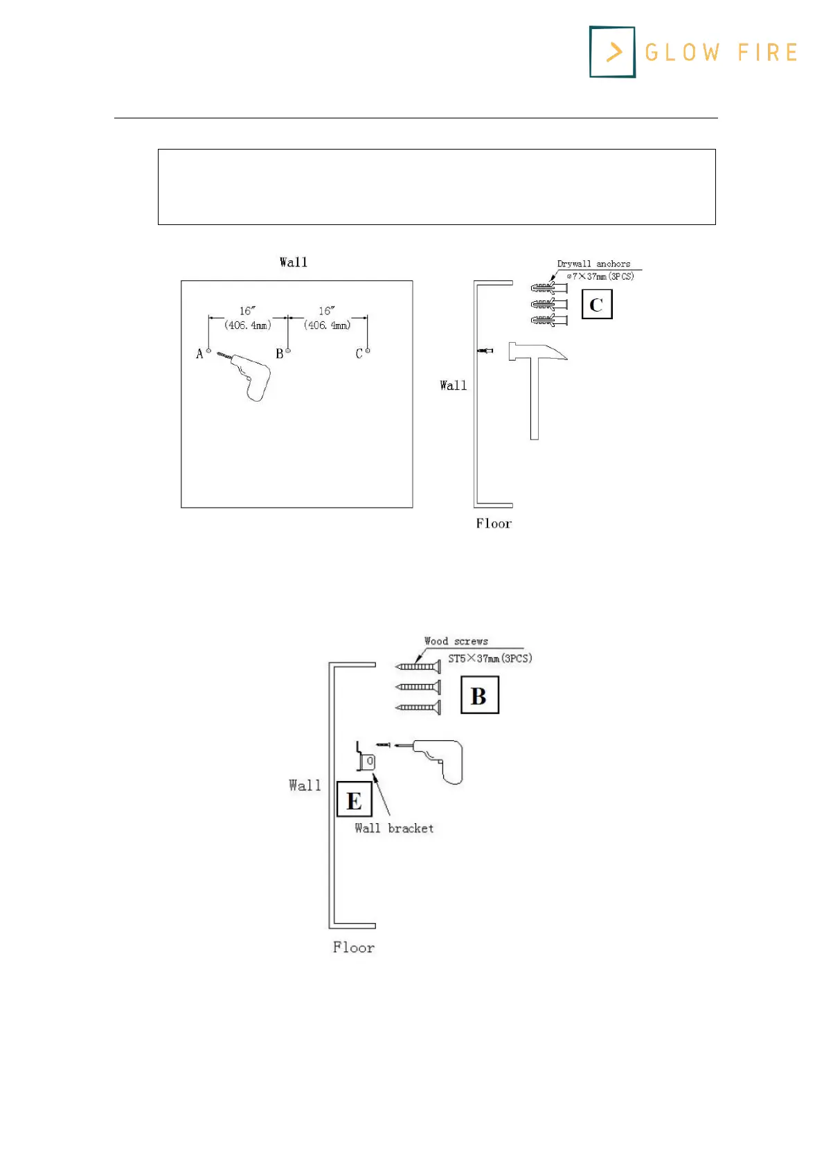 De wandbevestigingselementen in deze open haard zijn alleen voor