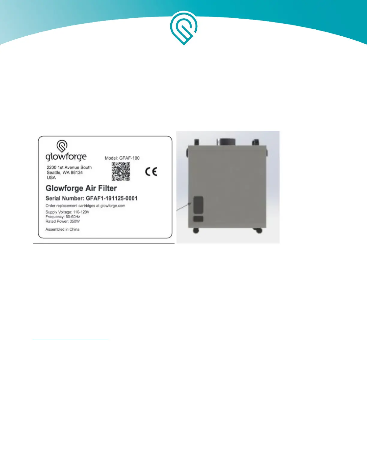 This label appears on the back of every Glowforge Air Filter, with an appropriate serial number, in
