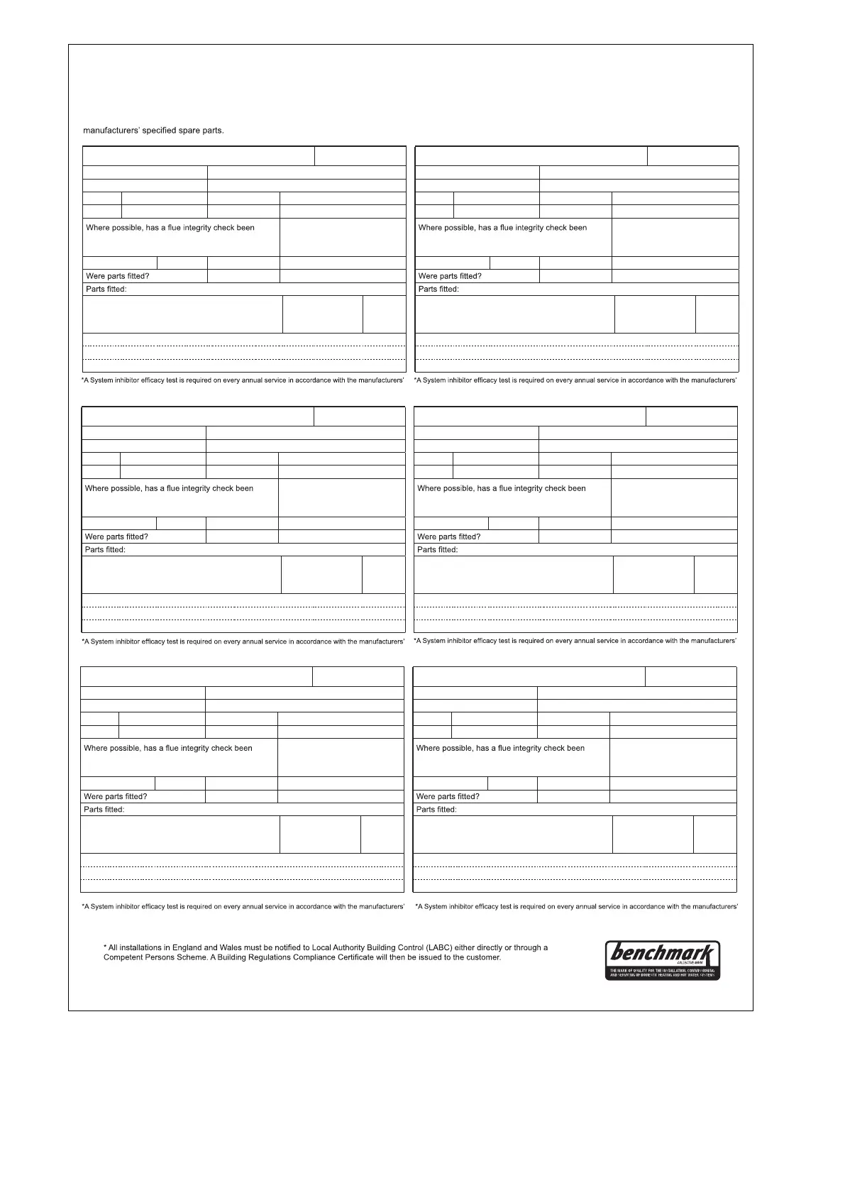When completing a service record (as below), please ensure you have carried out the service as described in the manufacturers’ instructions. Always use the