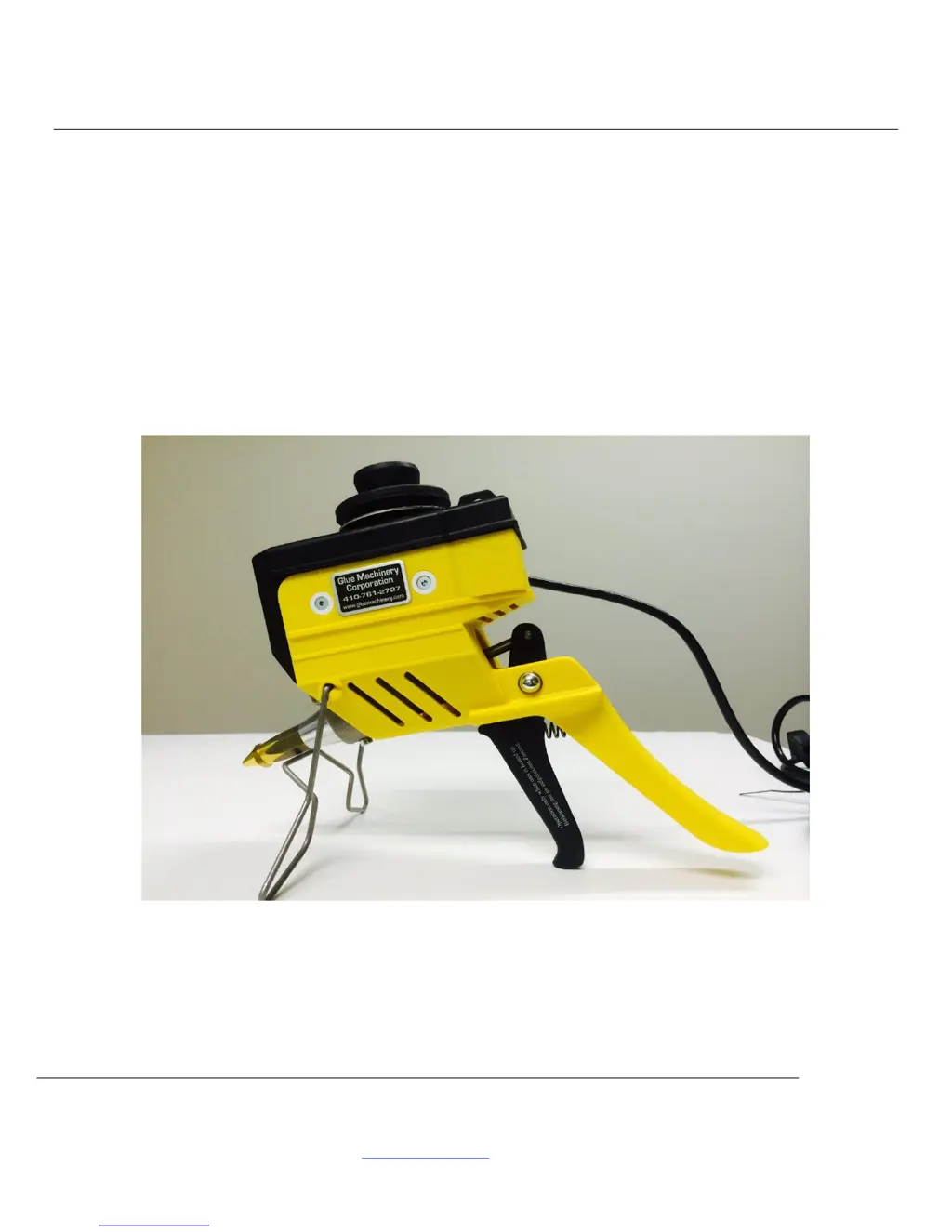 If little to no glue comes out of the Glue Machinery Glue Gun nozzle after warm-up, there might be several reasons: * The nozzle could be clogged. Try unscrewing and cleaning or replacing it. * The adhesive might be too thick or have too high viscosity, meaning you're using the wrong glue or the temperature is too low. * The temperature could be too low. Use a probe to measure the temperature of the molten glue in the tank. * The cap vent could be clogged. Try cleaning the vent hole.