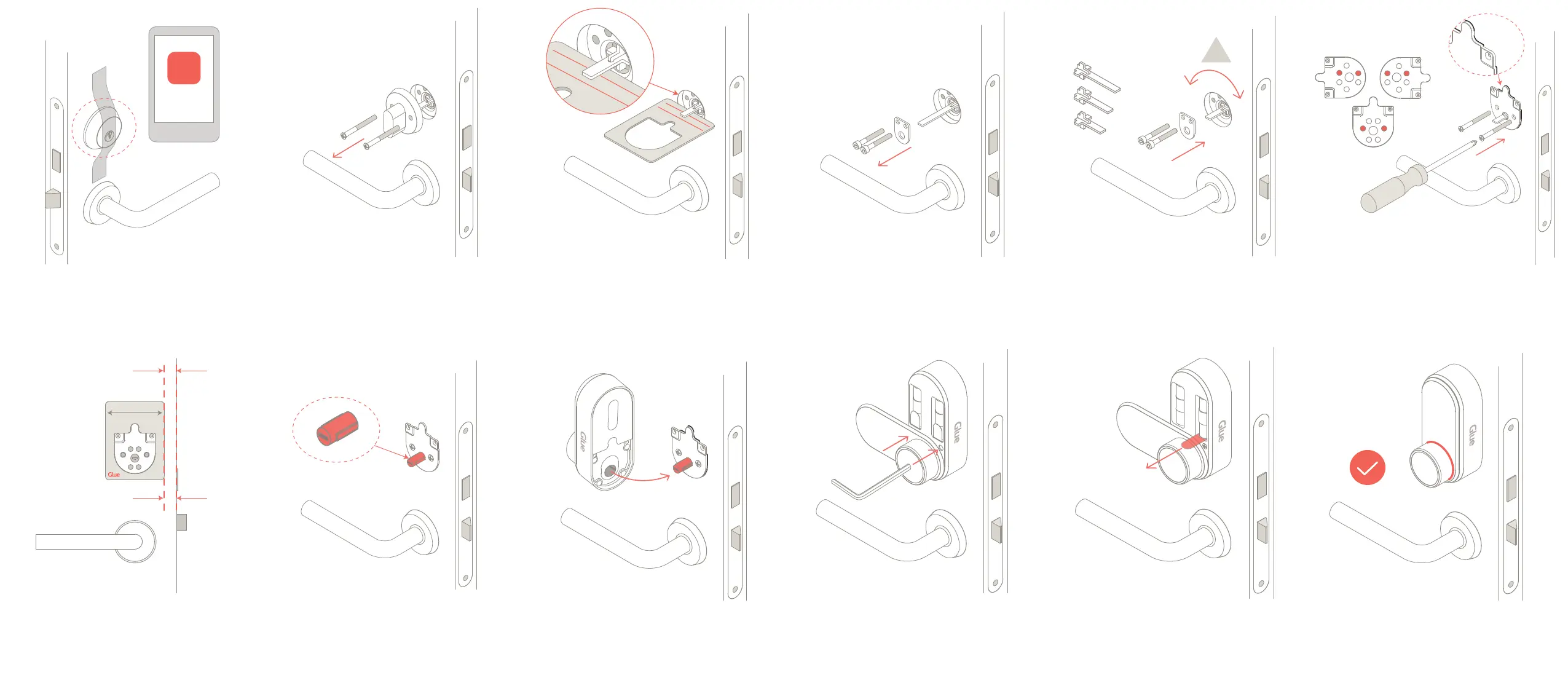Step 8 - Holding the Glue Smart Lock against the door,