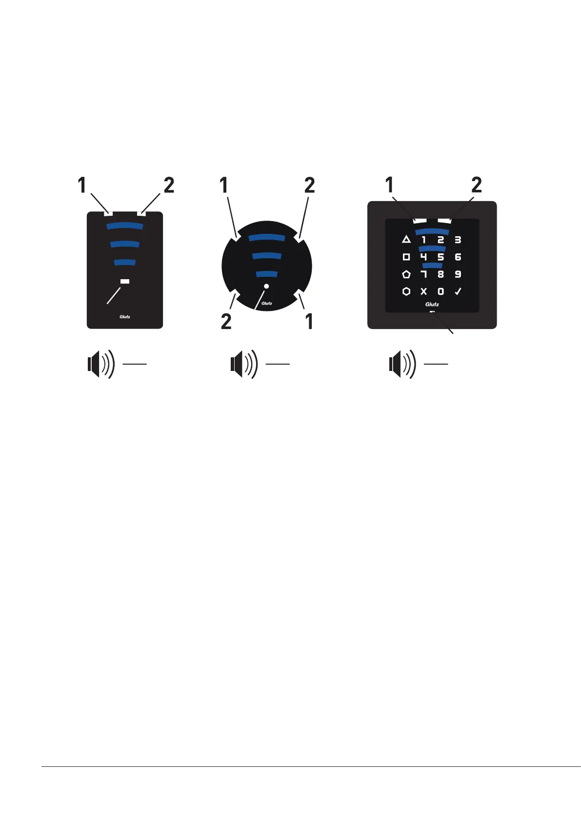 Glutz identication devices are tted with three LEDs. These are used as a means of communication. De-