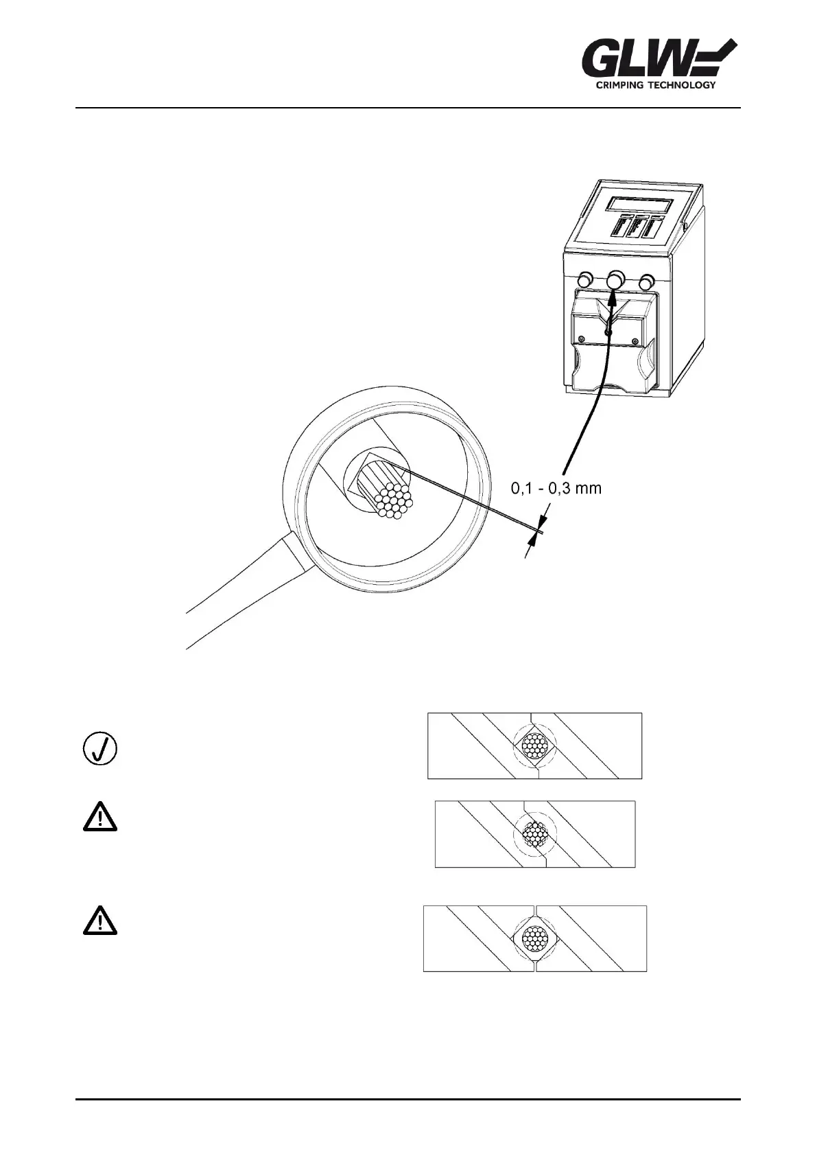 La coupe doit s'arrêter 0,1 – 0,3 mm avant le conducteur