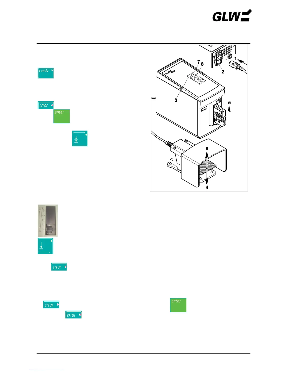 If lights up, check the adjustment of the dies (see steps 6 and 7).