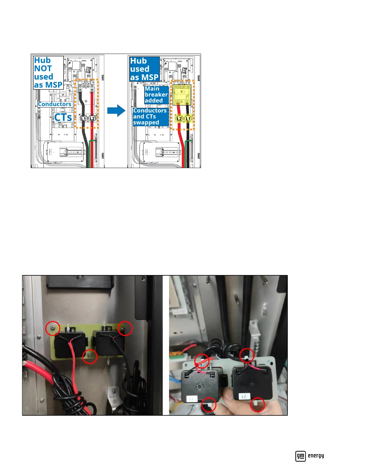Figure 14: L1/L2 conductors and CTs to be swapped when main breaker added