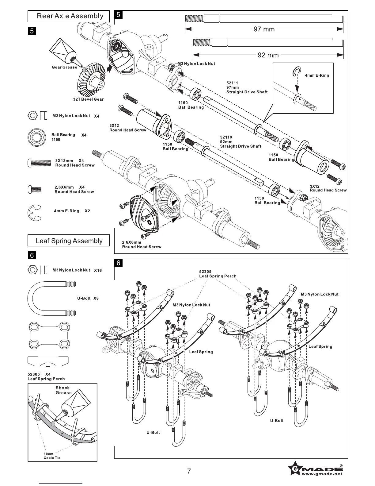 Gmade SawBack - Rear Axle Assembly; Bevel Gear & Drive Shaft Installation; Leaf Spring Assembly; Leaf Spring Perch & U-Bolt Attachment