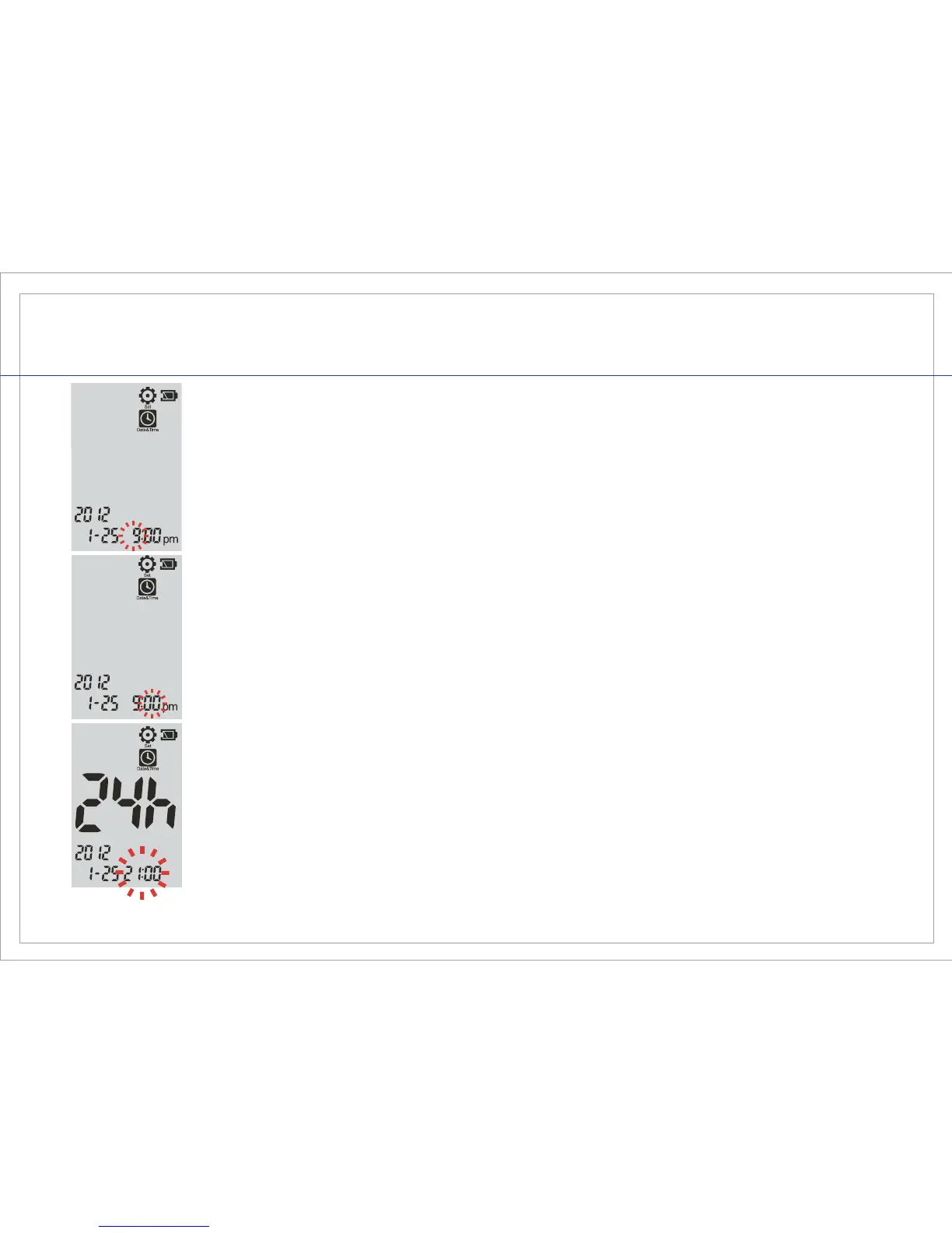 or 24h” will be ashing. Use the left or right button to adjust the clock to your