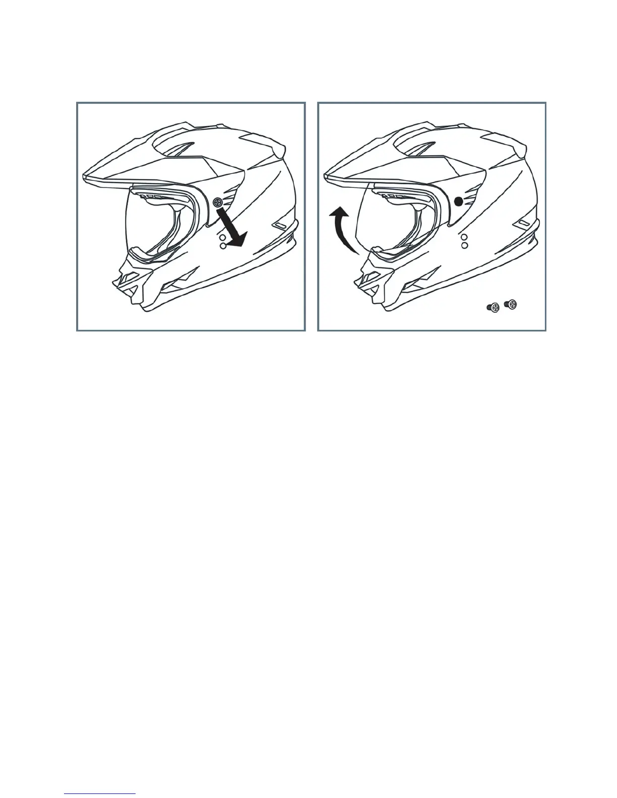 Note: Use the same visor screws to secure the shield side plate covers, that are supplied with