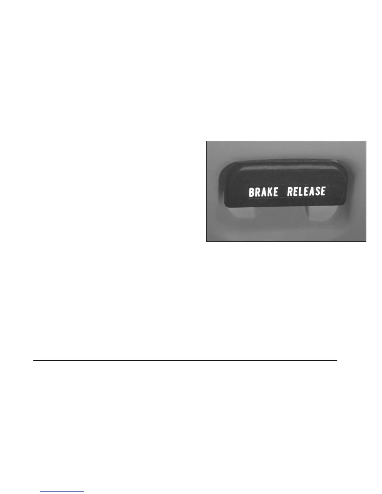 pedal down. Pull the BRAKE RELEASE lever fully. It is