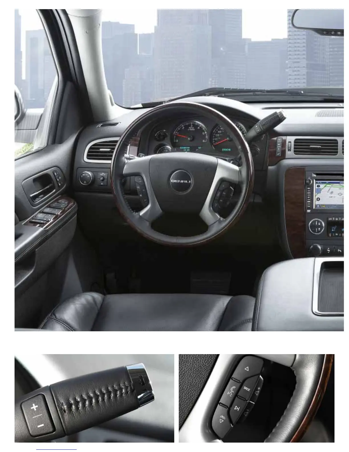 ↓ Sierra Denali’s steering-wheel-mounted controls allow