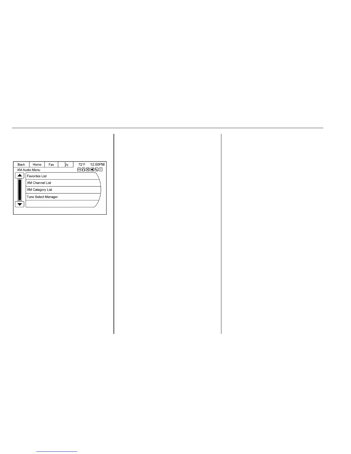 XM Channel List : Press to display