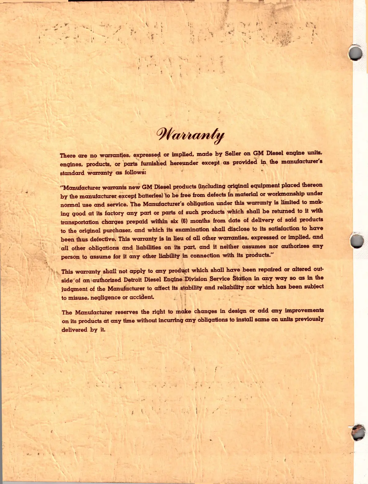 . "Manufacturer y.rarrantsnev.:.GM Diesel products (~C1udingoricpnalequipment placed thereon