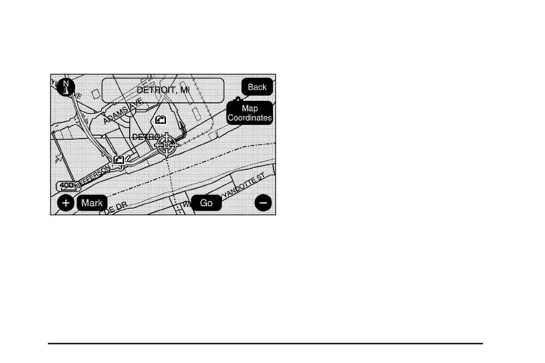 5. Select the Go screen button. The map screen,