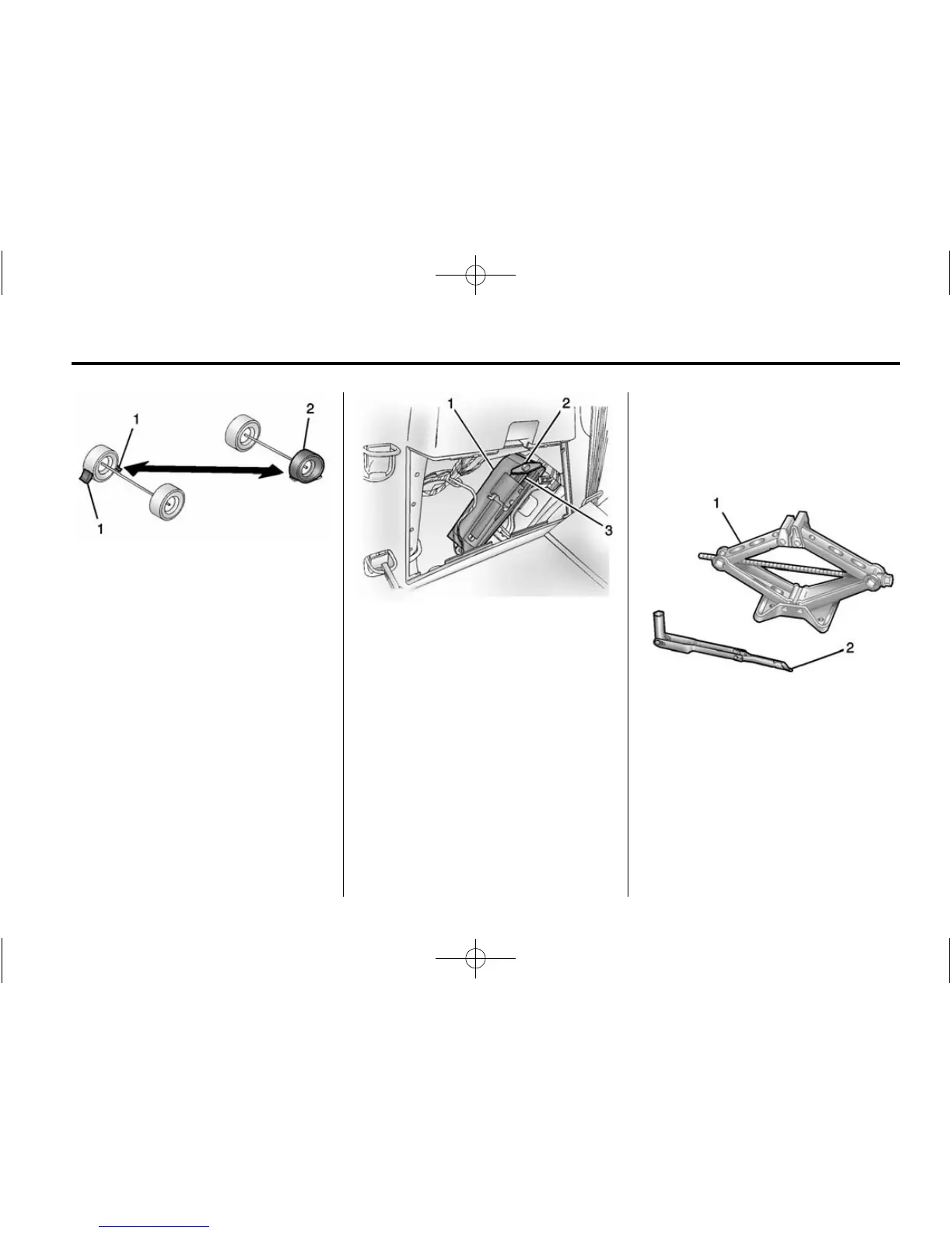 the jack (1) and wrench (2).