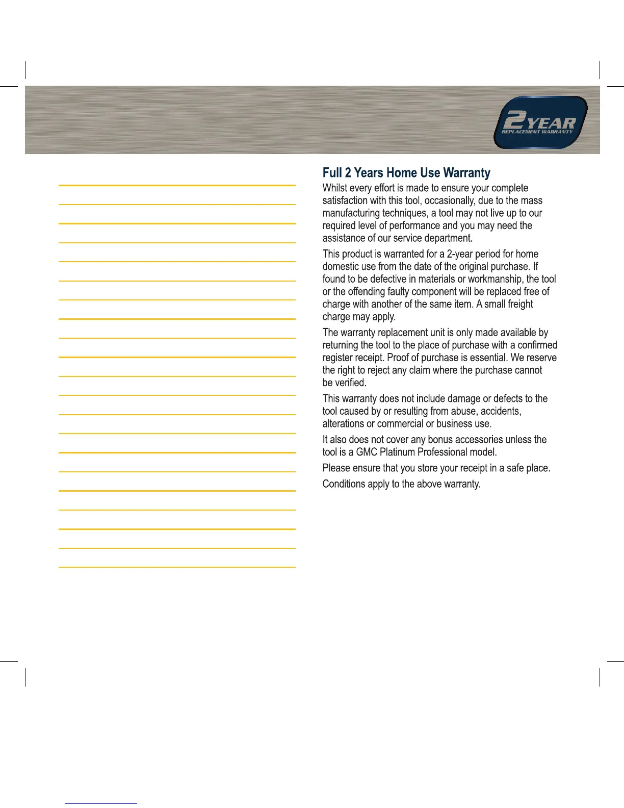 GMC AG230M - Full 2 Years Home Use Warranty
