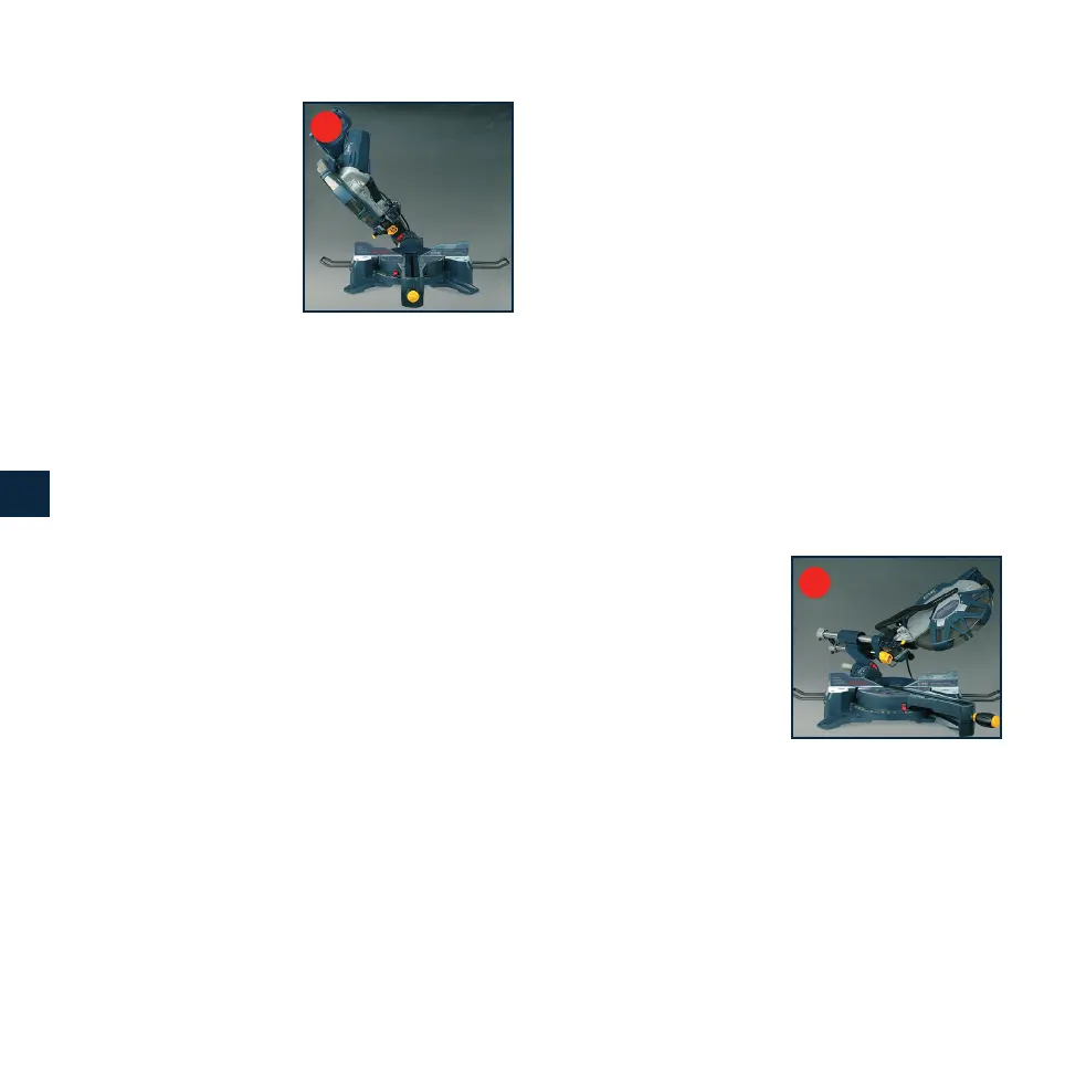 2. Afloje el mango de bloqueo del inglete (25).
